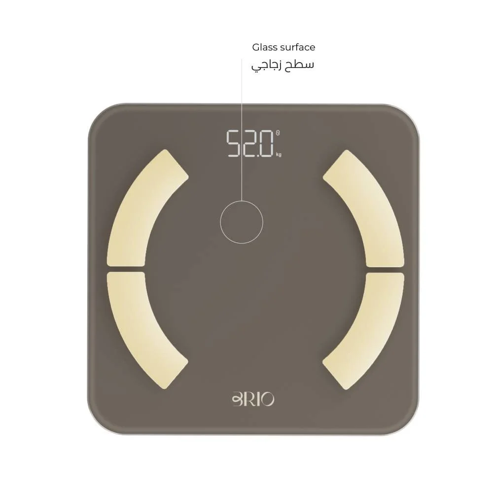 - يتميز بريو ميزان الجسم الذكي بتصميم أنيق وعصري يتناسب مع أي ديكور منزلي أو صالة رياضية.