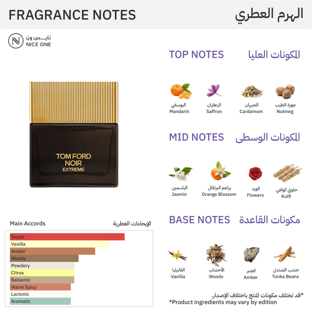 توم فورد نوار اكستريم هو العطر المثالي للرجل العصري الذي يعشق التفرّد ويحب أن يترك أثراً قوياً أينما ذهب. تركيبة متقنة تعبّر عن شخصية جذابة واثقة لا تُنسى، وهو بالفعل اختيار فاخر لكل من يبحث عن عطر يُكمل أناقته.