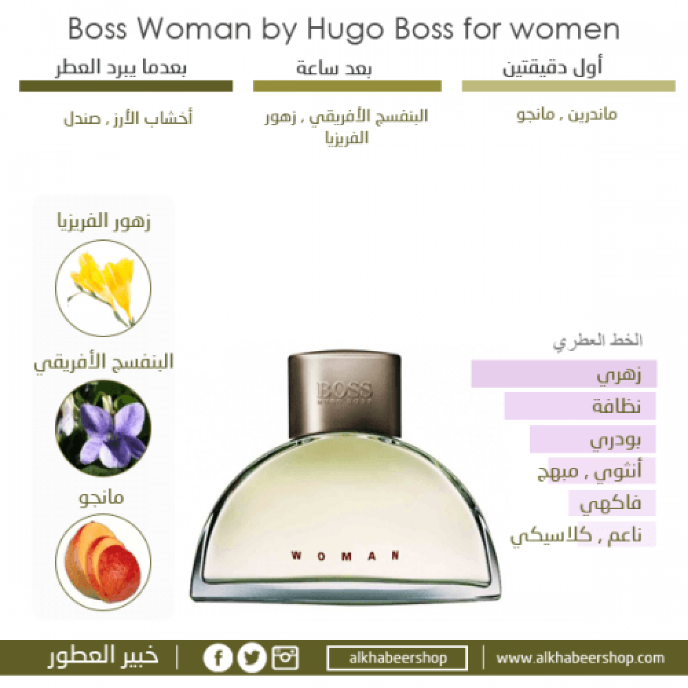 عطر هوغو بوس وومن الأبيض هو خيار مثالي للمرأة التي تسعى لترك انطباع أنثوي راقٍ يدوم طوال اليوم. بتوليفته الزهرية الناعمة ولمساته الخشبية الهادئة، يمنحك إحساساً بالأناقة والثقة في كل لحظة .